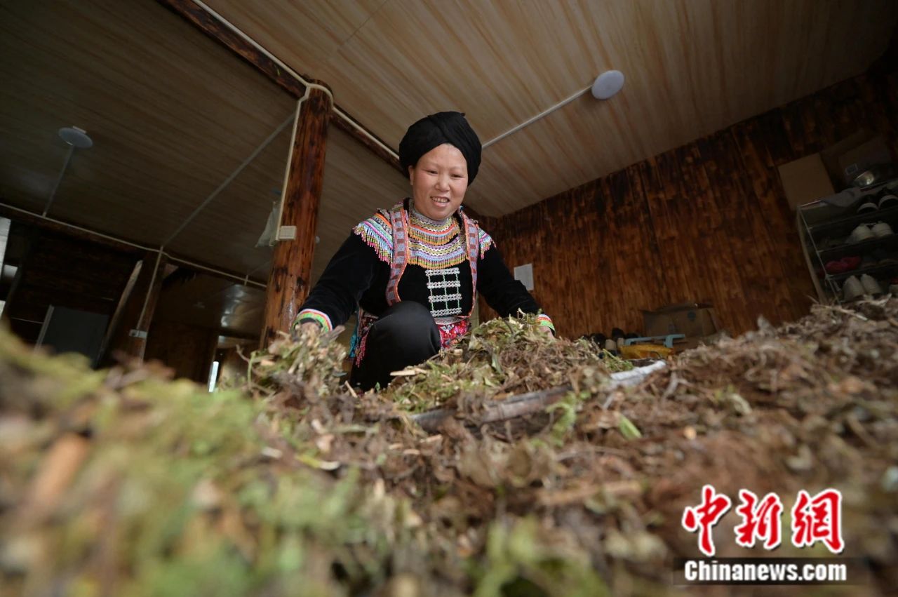 贵州省从江县丙妹镇大塘村五里坡瑶寨的村民在晾晒药材。吴德军 摄