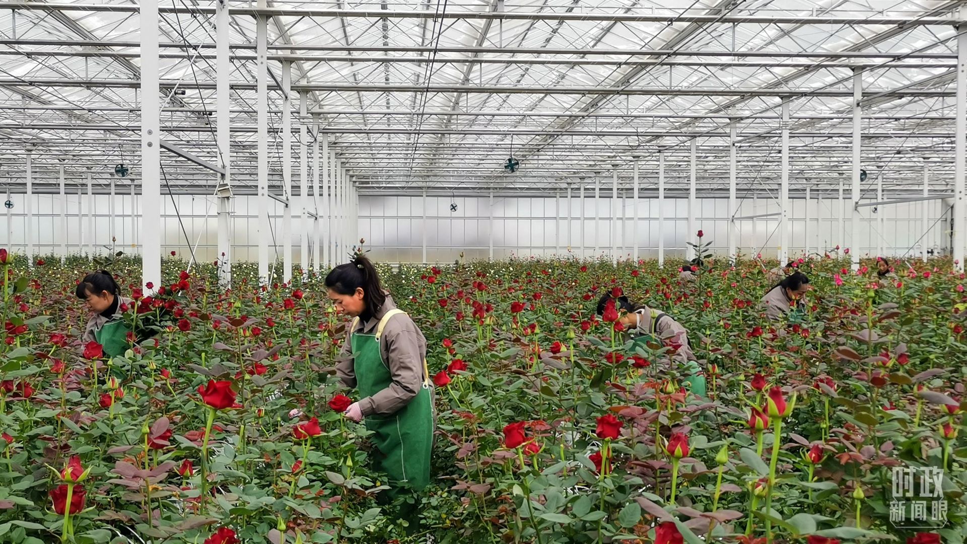 △产业园的智能温室大棚里,花开正艳。(总台央视记者范一鸣拍摄)