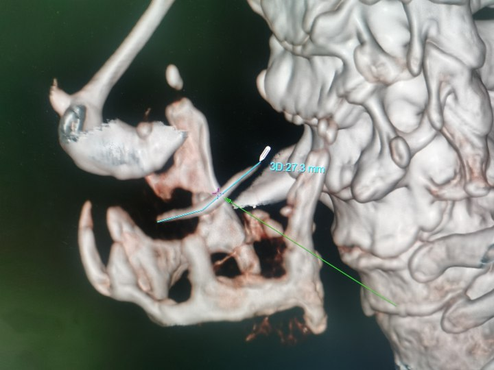 这名73岁的男性患者因误食鱼刺导致咽痛、吞咽困难和声音嘶哑长达三天,并在外院接受抗炎治疗后未见好转,随后紧急转入荆州市中医医院。入院检查发现,鱼刺呈“S”形嵌顿于右侧声门旁间隙,长度约3cm,周围组织严重水肿。此外,患者电子喉镜提示急性会厌炎及声带麻痹,随时可能引发窒息或致命性感染。