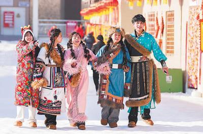 文旅出游热河北遵化一处雪乡景区,游客身着民族服饰游玩。这个冰雪季,我国冰雪旅游人数有望达5.2亿人次,旅游收入有望超6300亿元。刘满仓摄(影像中国)