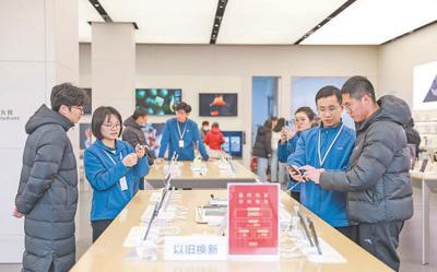 消费理念新山东青岛,顾客在李沧区一家华为智能生活馆选购手机。时尚新颖、物美价优的国产电子产品受到年轻人追捧。张 鹰摄(影像中国)