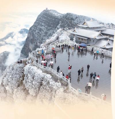 文旅出游热近年来,“特种兵式旅游”在青年群体中流行。图为游客在四川峨眉山金顶远眺银装素裹的群峰与云海。新华社记者 江宏景摄