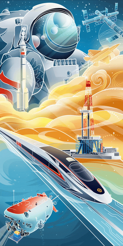 嫦娥六号带回月背土壤,商业航天多领域实现0到1的突破,中国高度把我们带到浩瀚宇宙。中国自主研制的新一代隐身战斗机亮相中国航展,全球最快高铁时速400公里CR450动车组正在接受试验验证,中国速度把我们带到更广阔的天地。“蛟龙号”顺利完成300次下潜,我国首口超万米深井完钻,中国深度让我们不断深度求索。