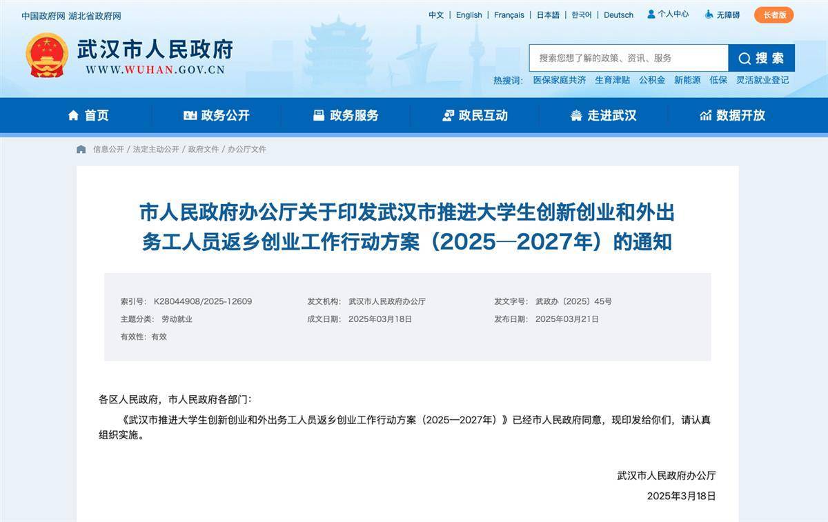 湖北日报讯 (记者成熔兴)为落实好省委、省人民政府关于大规模推进楚商回乡和返乡创业的工作安排,按照市委、市人民政府深入开展“楚材聚汉、共建支点”工作要求,加快完善创新带动创业、创业带动就业的“双创双带”机制,进一步做好大学生创新创业和外出务工人员返乡创业工作,3月18日,武汉市发布推进大学生创新创业和外出务工人员返乡创业工作行动方案(以下简称《方案》)。