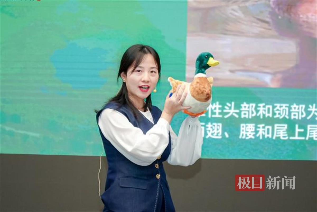 比赛现场,来自湖北省不动产登记中心的肖凌云带着青头潜鸭玩偶上台讲解,并创新引入热门IP哪吒形象,以视频互动的形式,同哪吒互动讲述了青头潜鸭首次现身梁子湖的生态故事。“候鸟迁徙是生态环境的晴雨表,青头潜鸭的到来,正是对湖北生态修复成效的认可。”她通过拟人化的叙事,将生物多样性保护知识融入趣味科普。肖凌云表示,她想以趣味科普的形式,在讲解自然资源知识的同时,展示湖北自然资源人的风采。