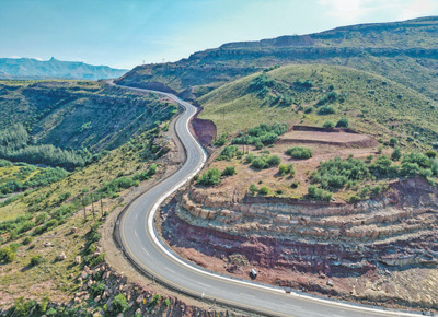 莫塞公路盘山而上、蜿蜒向前,宛如绸带一般飘落在连绵起伏的群山之中。这条公路全长91.48公里,连接莱索托南部边境的哈姆皮提和塞赫拉巴泽贝。项目于2019年初动工建设,2024年6月全线通车,将原先狭窄的砾石土路升级改造成9米宽的双向两车道沥青路面,大大提升沿线民众的出行效率。