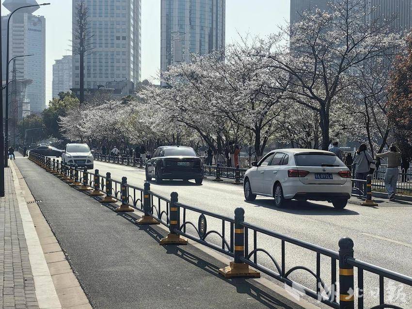 来自麻城的唐女士一家刚下高铁便直奔此地,“没想到金融街里藏着这么大片樱花,手机导航显示‘取水楼地铁站D口步行300米’时还以为是弄错了”。