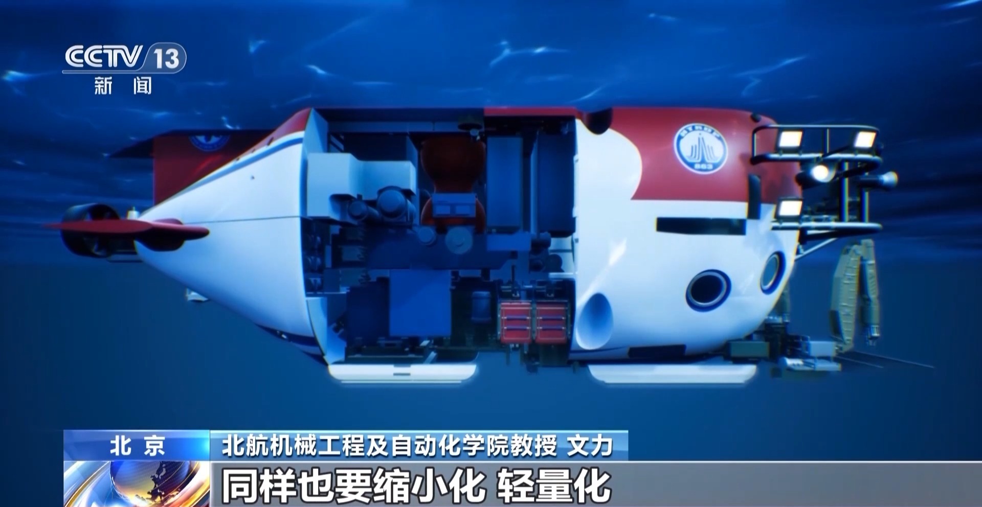 北航机械工程及自动化学院教授 文力:驱动部件,就是要运动的部件尤其困难。深海大型潜航器用的电机都非常地重,原因是它还要加保护,就相当于在它运动的部件上面要加一个厚厚的壳,来抵御外界的深海压力。但是这个问题如果把它做到这么小的机器人上,那怎样把驱动器缩小化、轻量化、小尺度化,这个问题就很难了。