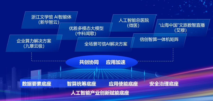 会上,基于数字经济人工智能产业创新赋能底座,新华网发布2025首批生态共创产品。新华网推出“全场景可信AI解决方案”“新华网信创智算一体机矩阵”“浙江文学馆AI智能体”等。同时,新华网联合生态合作伙伴九章云极,提供企业算力解决方案;携手中科闻歌,用“优雅多模态大模型”赋能国际传播;与微医共同升级区域健共体引擎——人工智能总医院;与南京艾穆推出“山海中国”文旅数智直播解决方案。