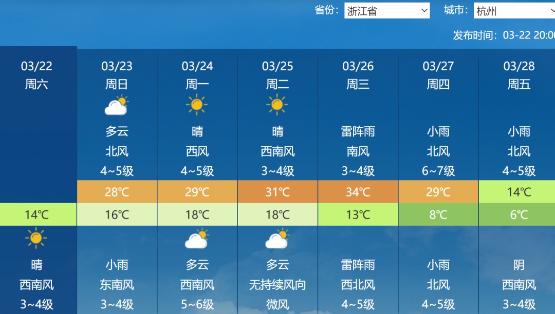 像杭州26日的35℃如果兑现,将是当地最早高温纪录。此外,合肥、郑州、长沙等地下周也有望冲击当地3月最高气温纪录。