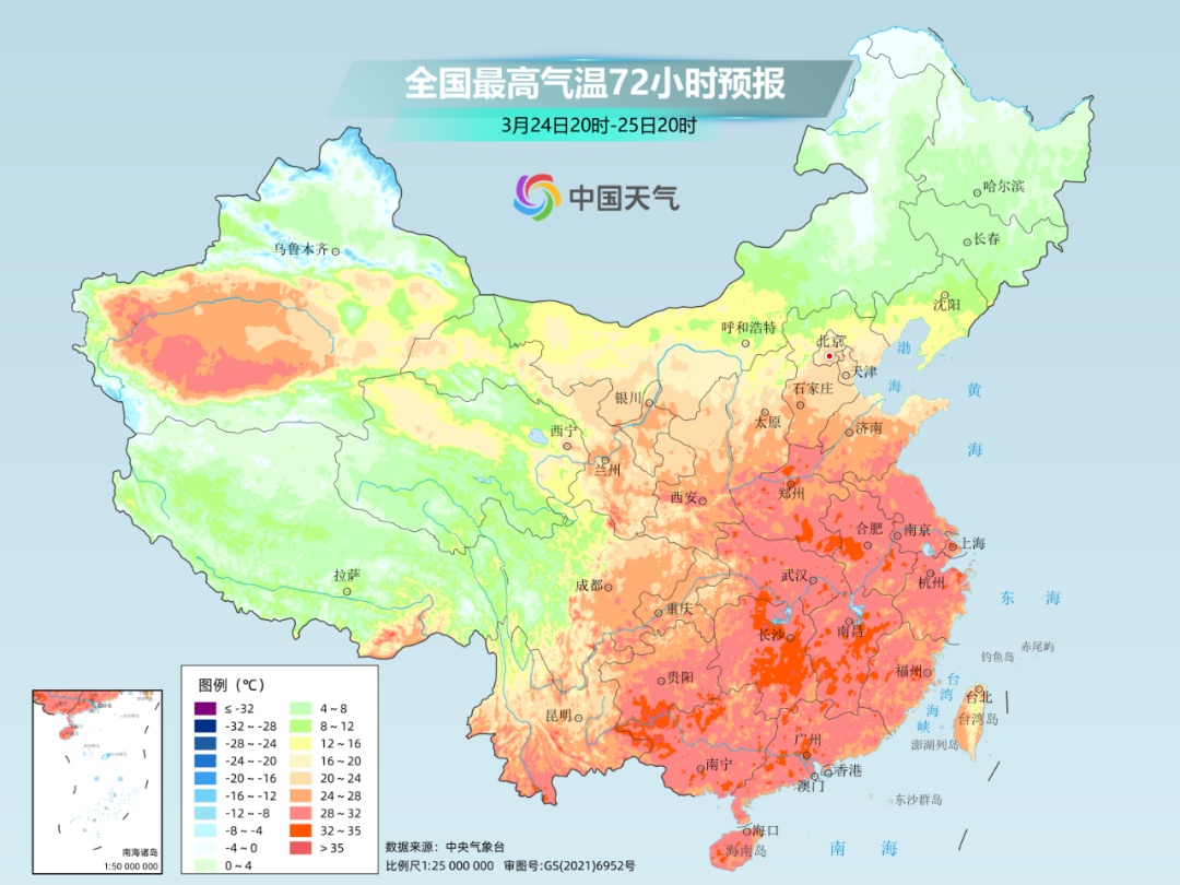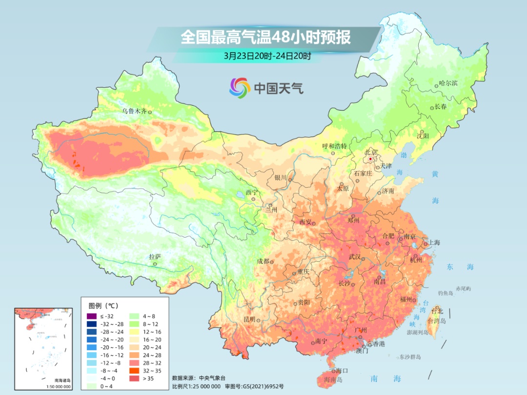 到下周前半段,南方气温也将加速起飞。预计25日-26日,黄河以南地区暖热达到巅峰,最高气温大范围超过30℃,江南华南局地还将出现高温,恍如夏日。