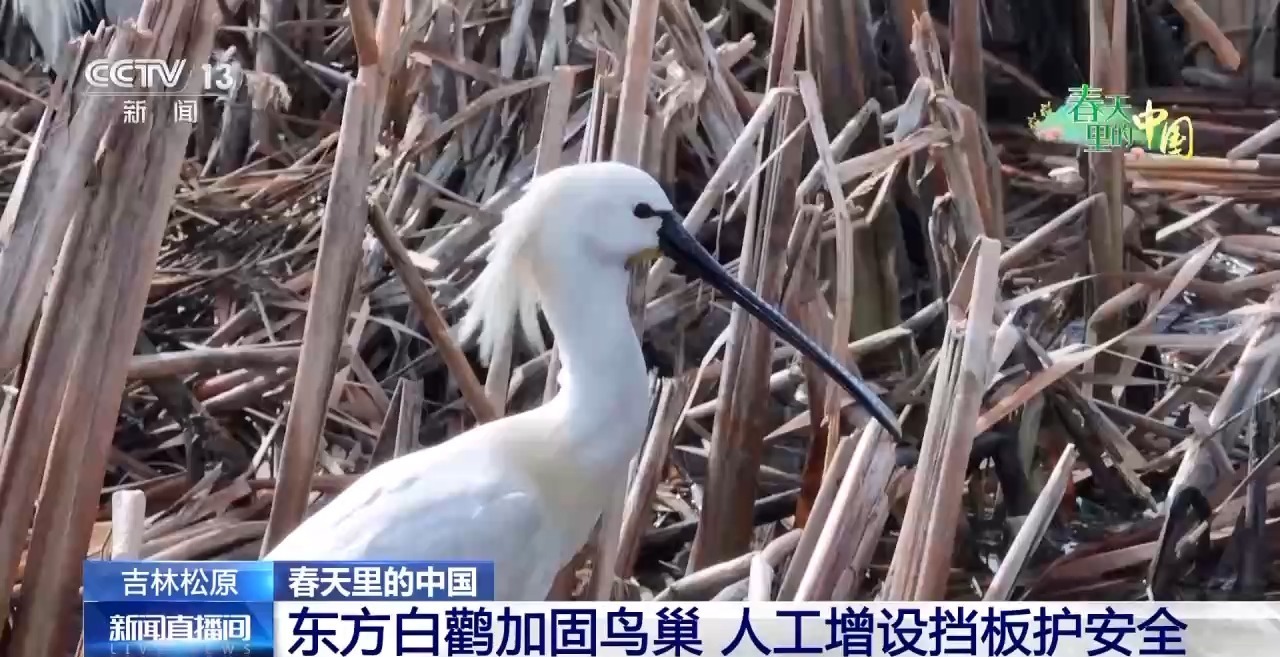 目前,查干湖国家级保护区周边已经发现了8个东方白鹳鸟巢,待到4月份繁殖期,每巢可以孵化出3至4个鸟蛋。