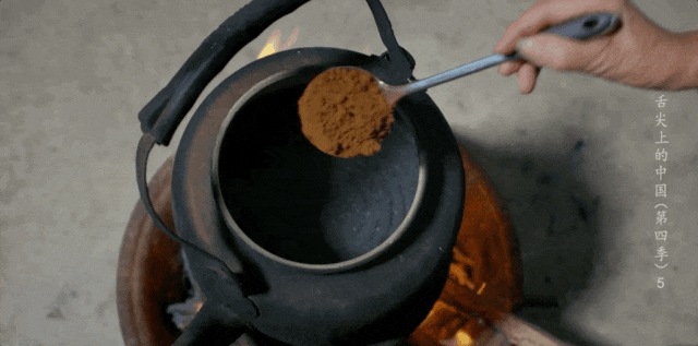 煮沸的咖啡里加入灵魂调料:红糖、核桃碎。咖啡香混合着红糖的甜蜜和核桃的香气,丰富的口感让人回味无穷。