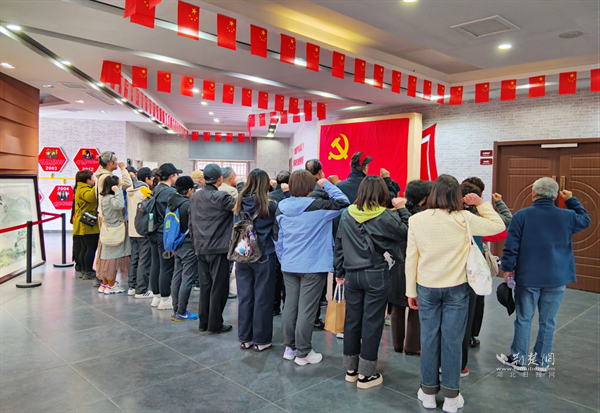 姚家山素有“武汉抗战第一村”之称,曾是抗日战争时期新四军第五师司政机关驻地,李先念、陈少敏等革命先辈在此留下了光辉足迹。在陈列馆大厅,全体党员面向党旗庄严宣誓,重温入党誓词。铿锵的誓言回荡在展馆内,进一步坚定了党员们听党话、跟党走的决心。党员们首先参观了新四军第五师历史陈列馆,通过珍贵的历史图片、实物和文献资料,回顾了从“木兰烽火”到“战略包围”的抗战历程。展馆内全景式声光电技术再现了革命年代的烽火硝烟,党员们驻足凝视,深刻体会到先烈们为民族解放事业舍生忘死的奉献精神。