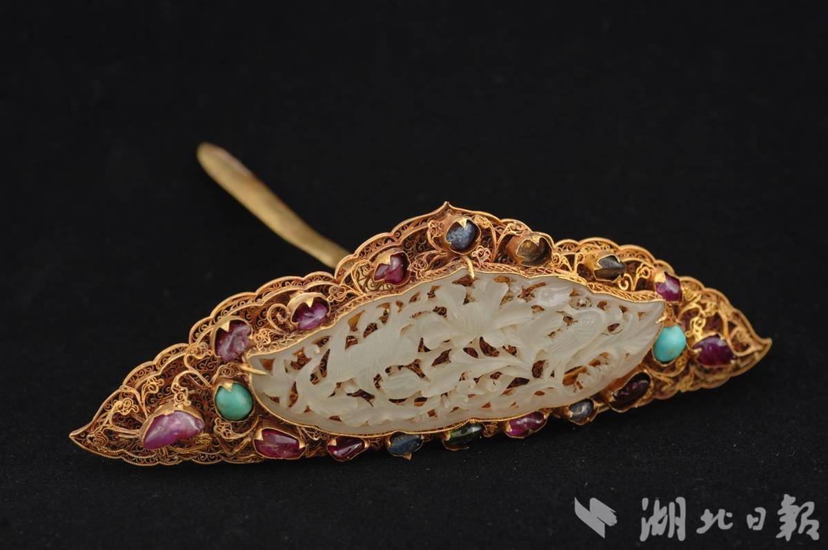 金累丝镶玉嵌宝双鸾鸟牡丹分心明湖北省博物馆藏。