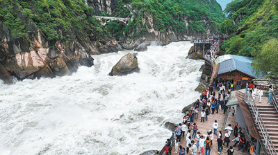 云南虎跳峡游人如织。