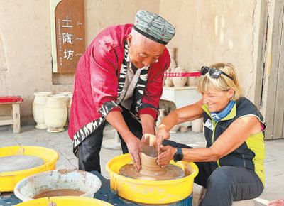 维娜·卡玛洛塔在新疆体验制陶工艺。