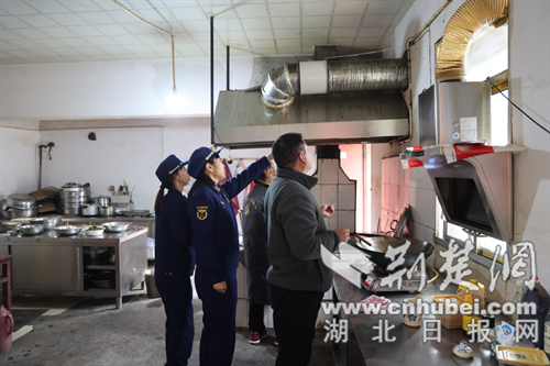 消防监督员对寺庙厨房进行抽查。通讯员 供图