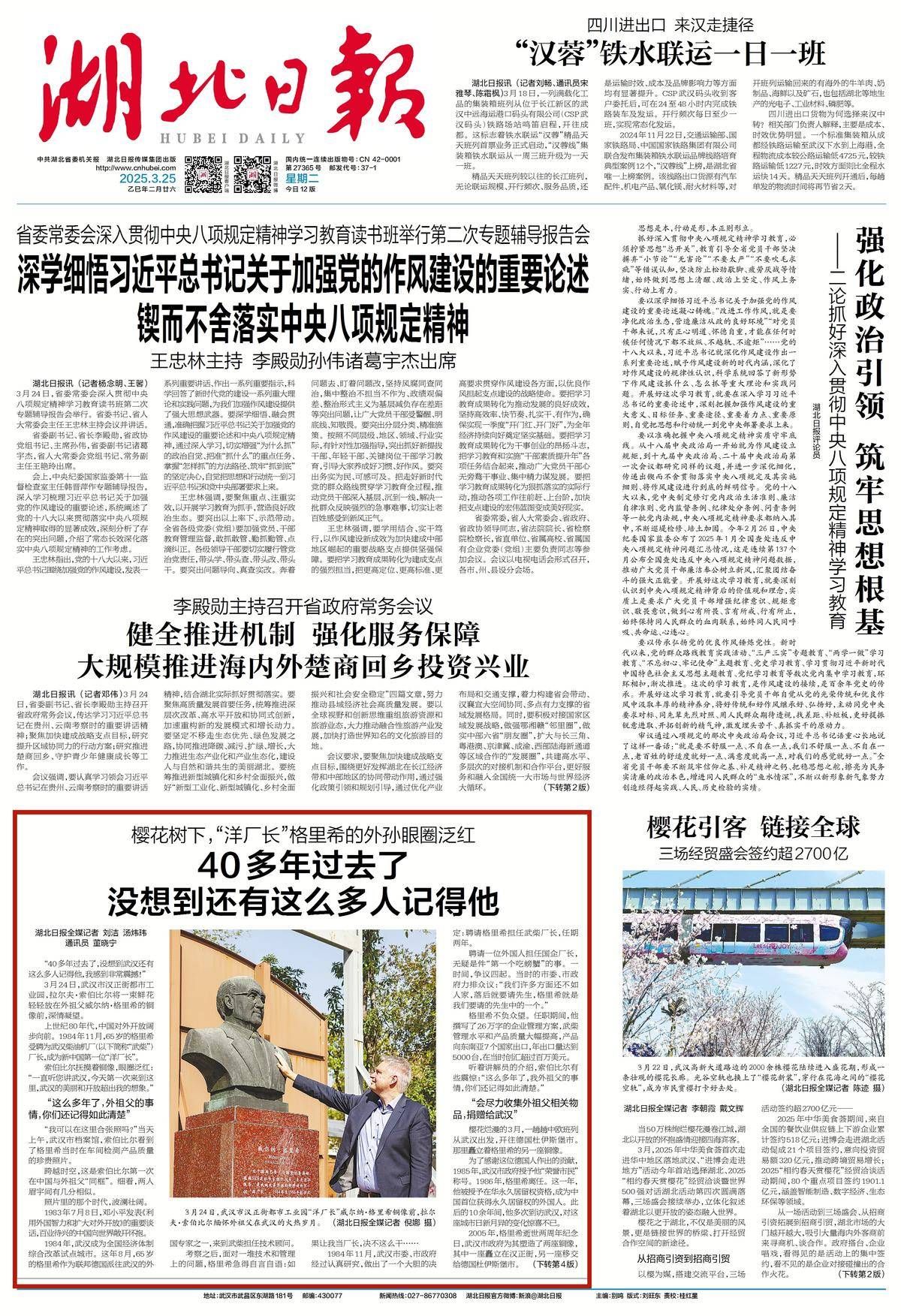 “湖北正在打造内陆开放高地,这是好事,不仅带动湖北、中国发展,也将促进世界共同发展。”索伯比尔说,次日,他要飞往上海,参加2025上海半导体展会。
