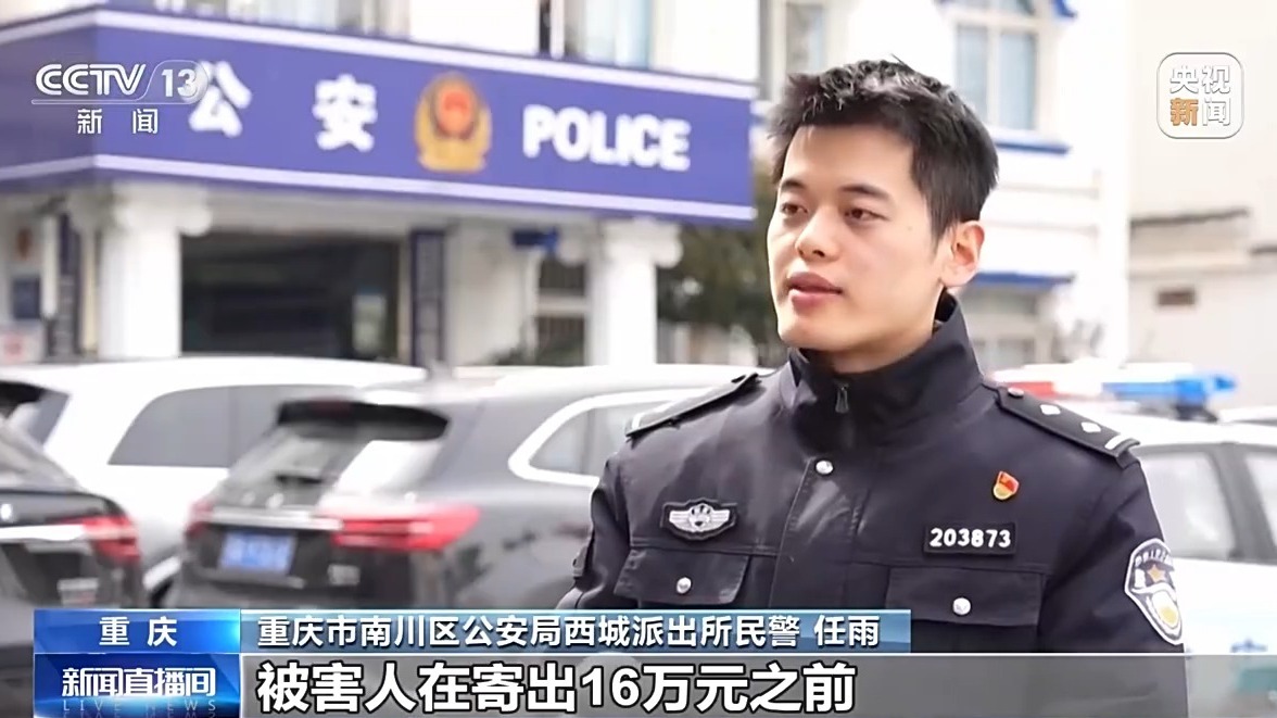 重庆市南川区公安局西城派出所民警 任雨:被害人在寄出16万元之前,已经意识到可能被骗,但抱着侥幸心理,认为寄出这16万就能把之前被骗的钱都取回来。但是诈骗往往就是这样环环相扣,只会越陷越深,并不会将你被骗的钱退给你。