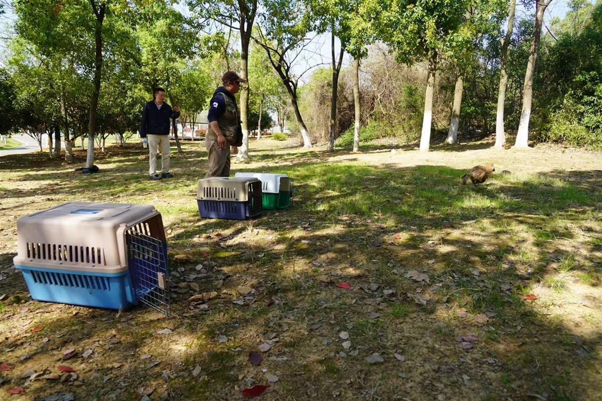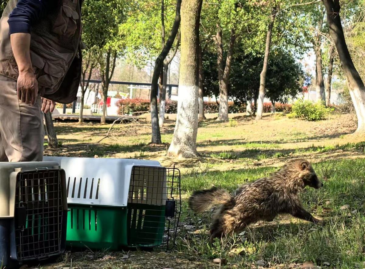 为何选择在龙灵山生态公园放归?赵伟介绍,这里有山林、灌木丛、湖水,植物丰富,花面狸是灵猫科动物,会爬树,喜欢吃果子,夜间人少时,还可到湖里喝水,貉是犬科动物,吃杂食,它们在这里吃喝不愁,也很安逸,也许以后它们会选择更好的地方;它们回到大自然,自洽自在。