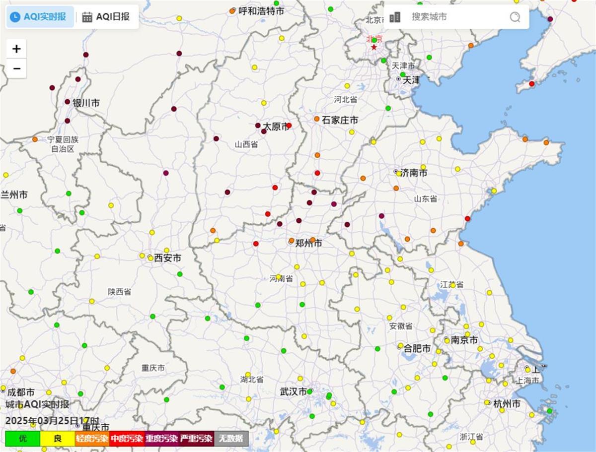 3月25日6时,中央气象台发布沙尘暴蓝色预警,预计25日8时至26日8时,西北、京津冀及周边、山东南部、江苏北部等地区有扬沙或浮尘天气,新疆东南部、内蒙古西部、甘肃西部有沙尘暴,局地有强沙尘暴。3月25日17时,陕甘宁一带、内蒙西南部、山西南部、河南北部、山东南部多地严重污染,首要污染物为PM10。目前,湖北省空气质量全省优良,首要污染物以O3为主,预计27日凌晨起本轮沙尘污染先影响十堰,随后至全省。