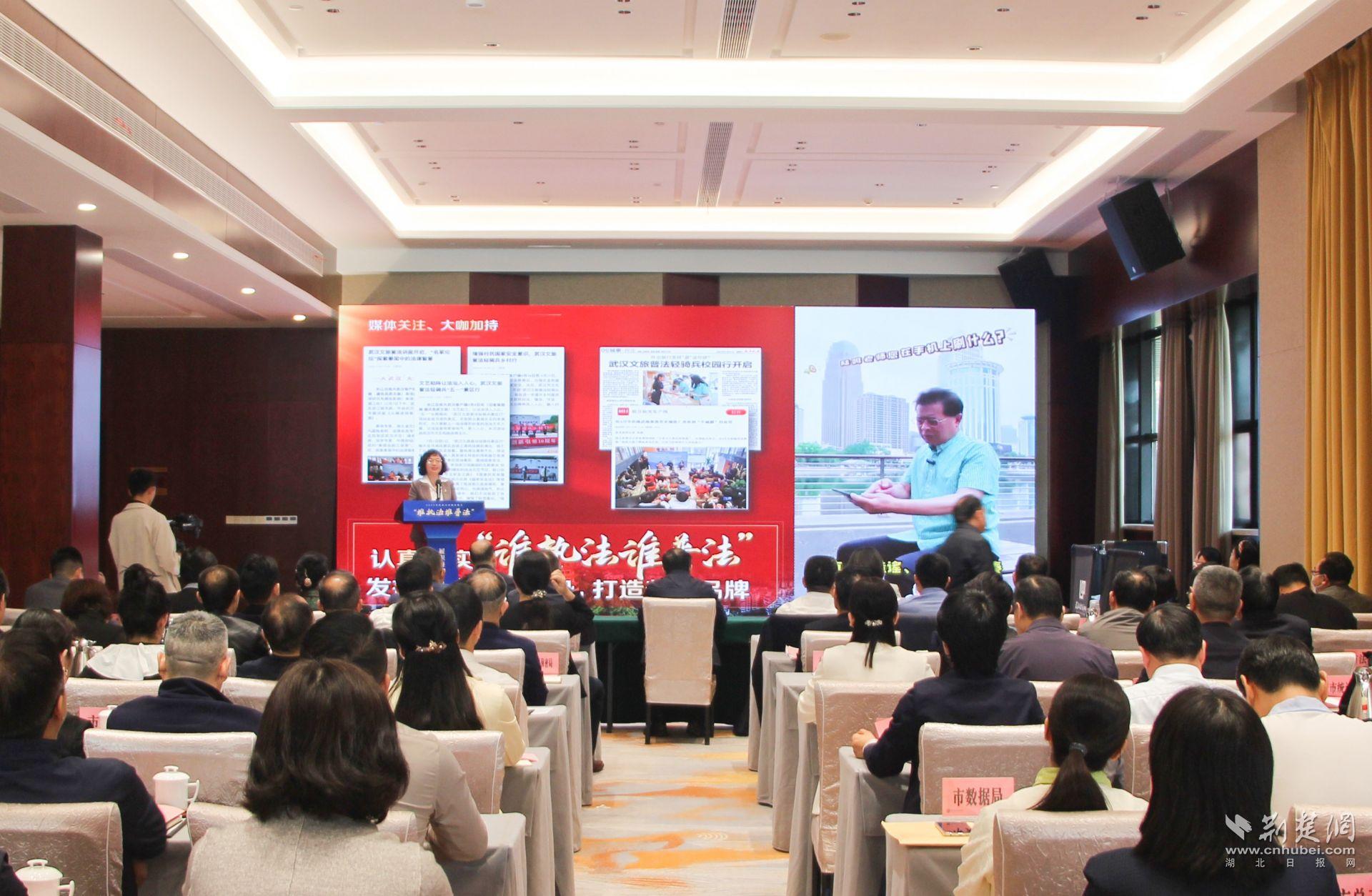 武汉市司法局党委书记,市委依法治市办副主任彭国元,武汉市司法局局长,市委依法治市办副主任穆书芹,武汉市委全面依法治市委员会守法普法协调小组成员单位分管领导,各区司法局分管领导等参加活动。
