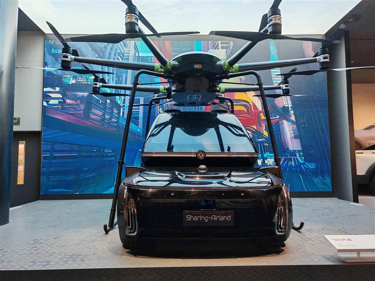 这是东风汽车面向未来低空领域,探索共享+多模式交通无缝化移动服务开发的sharing-Airland载人飞行器,该款飞行器已实现了由2021年载货版到2022年载人版的跨越。