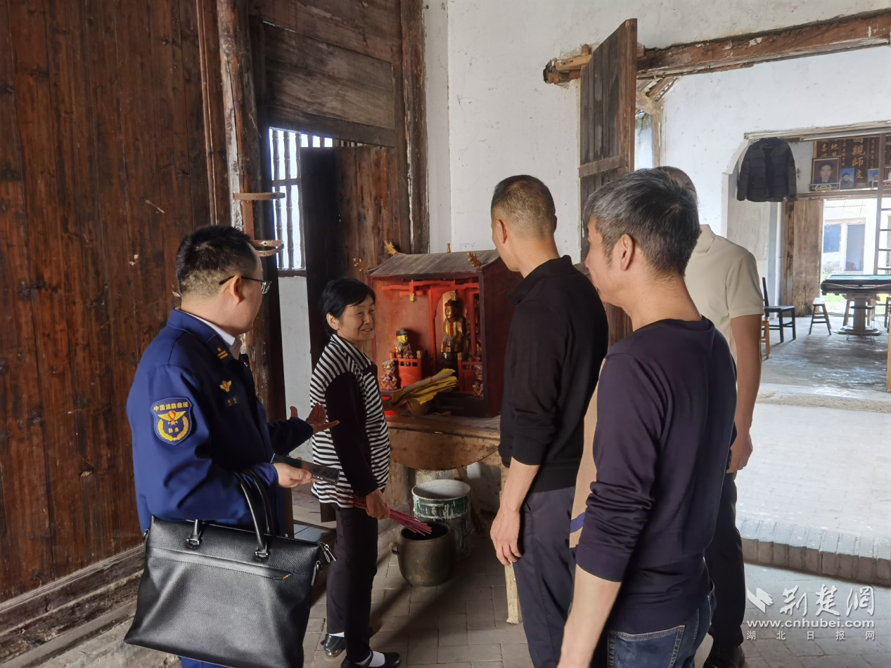 消防监督员对根据地内居民明火祭祀行为进行提醒及纠正。