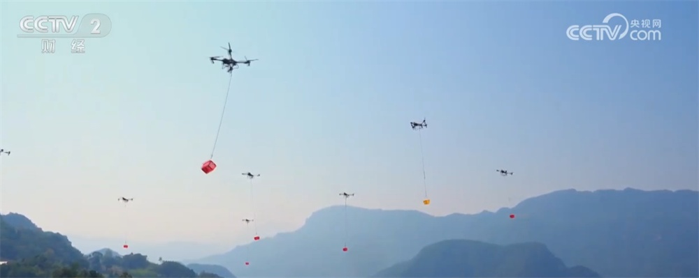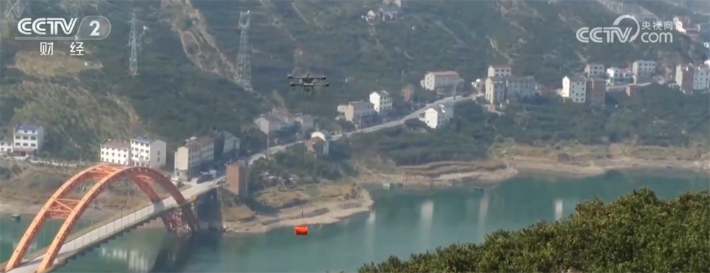 当地村民朱孝新所说的无人机,只需1分钟即可直达山间公路。