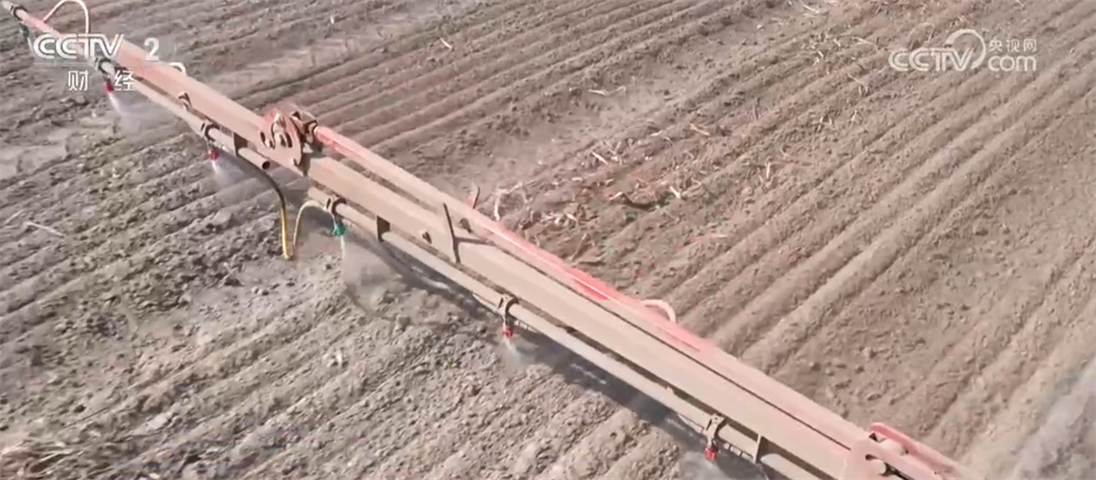 “麦豆两茬”的种植模式少不了新技术的加持。农户们对播完的小麦喷施的这种液体地膜可以阻止土壤水分蒸发,自动降解后还能为作物提供养分,保证小麦良好的出苗率。目前,春小麦播种已接近尾声。
