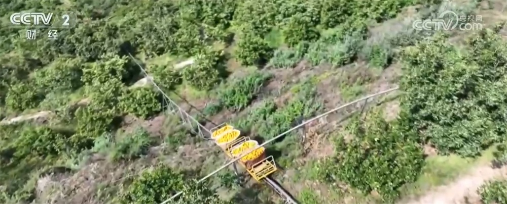 央视网消息:在湖北宜昌秭归县,晚熟的脐橙这几天到了收获季,脐橙园里,金黄的果实坐着“小火车” 、乘着无人机,翻山越岭,穿梭田间。