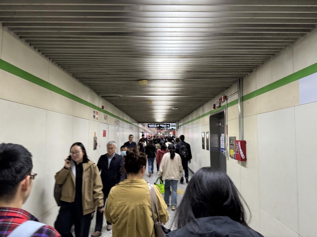 淞虹路地铁站5号出口通道内人头攒动。人民网记者 龚莎摄