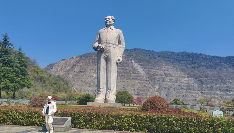 黄石国家矿山公园日出东方广场,毛主席手托矿石雕塑