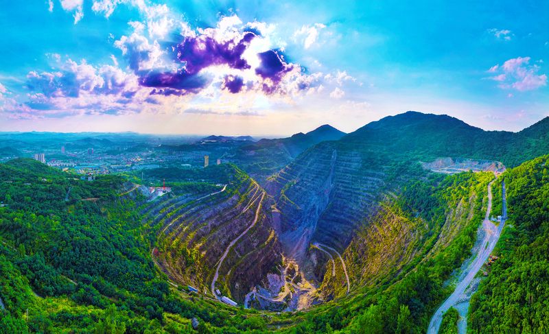 一处“天坑”,万象沧桑。1700多年前,三国时期的孙权在此铸铁造剑;100多年前,湖广总督张之洞首开机械化采矿之先河;新中国成立后,国家重建大冶铁矿,露天开采直至2000年资源枯竭而告终。