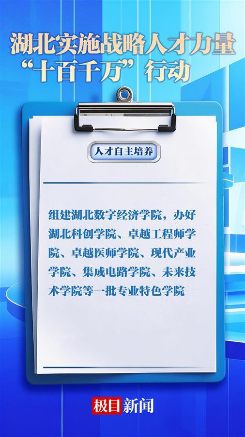 持续加大人才自主培养模式改革力度。聚焦基础研究人才培养,深入实施国家基础学科拔尖人才培养战略行动,构建各学段衔接的拔尖创新人才培养机制和体系。聚焦交叉融合人才培养,实施新工科、新医科、新农科、新文科、新商科2.0建设三年行动,组建湖北数字经济学院,办好湖北科创学院、卓越工程师学院、卓越医师学院、现代产业学院、集成电路学院、未来技术学院等一批专业特色学院。深化博士研究生教育改革,推进学术学位与专业学位研究生教育分类发展,加强科研创新能力和实践能力考查。