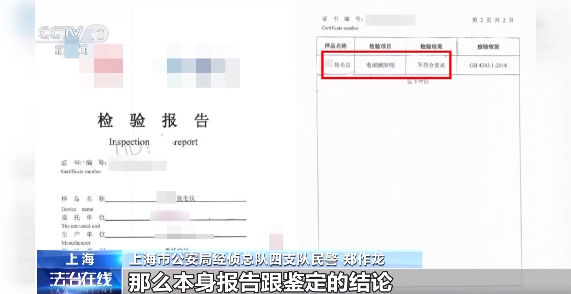 上海市公安局经侦总队四支队副支队长 朱宏毅:他认为这些报告是子虚乌有的,鉴定机构出这个报告可能是存在问题的。然后他们向我们公安机关反映,也拿出了他们自己产品的合格检验报告,报告是没问题的。