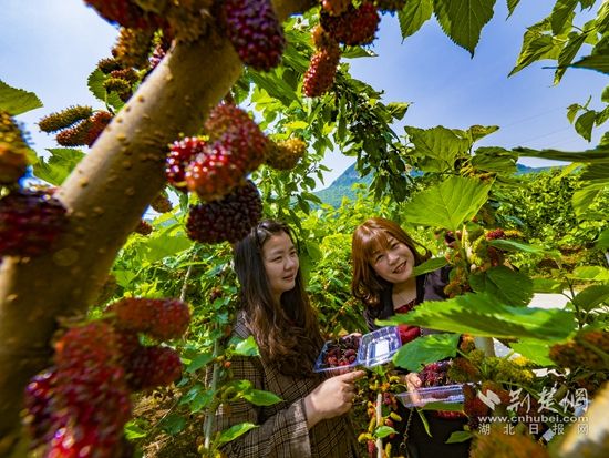 (周边游客采摘桑葚。)