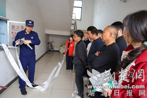 消防宣传员现场向参训人员讲解及示范室内消火栓的使用方法。通讯员 供图