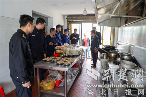 检查组对餐饮门店厨房进行安全隐患排查。通讯员 供图