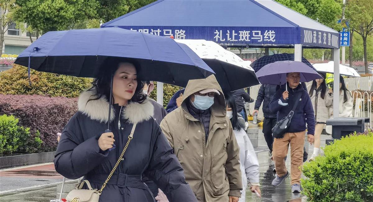 3月28日,与前几天春日暖0阳的温柔不同,寒潮以凛冽之势重掌武汉三镇。冷空气在江城再次刷了一波存在感,气温骤降到10℃以下。武汉东湖路,大风寒雨中,人们穿着厚厚的冬装,以应对这次来势汹汹的降温。