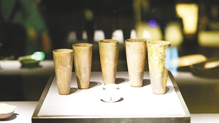 楚地方便收纳、携带的精致好物,不止这些。荆门包山楚墓出土有酒具套杯、食具套盘,杯口齐平,胎质轻薄,从大到小依次嵌套,十足的战国套娃式餐具。为了凸显其使用功能,不像同时期其它青铜器纹饰繁缛,套杯、套盘均没有过多装饰。“要知道2300多年前,没有机械手段辅助,更没有3D打印,要将其严丝合缝套在一起,对铸造工艺要求极高。”温静说。