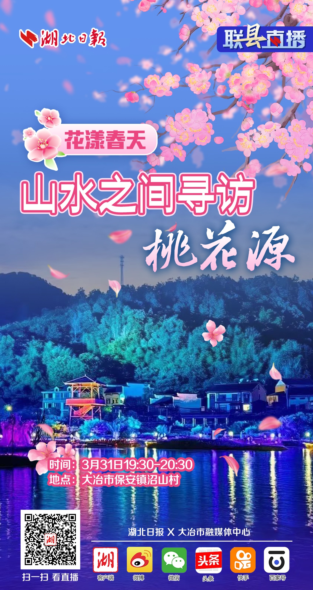 3月31日19:30,湖北日报联合大冶市融媒体中心直播演出盛况,带广大网友春夜乘船漫游,感受穿越千年的诗意与浪漫。