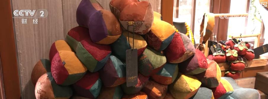 除了研学体验与旅游观光,传统技艺与现代设计融合的文创衍生产品也受到游客的欢迎。在这家以香云纱为主题打造的城市生活馆内,明信片、书签、蚕纱枕、茶席等香云纱文创产品琳琅满目,成了畅销的城市伴手礼。