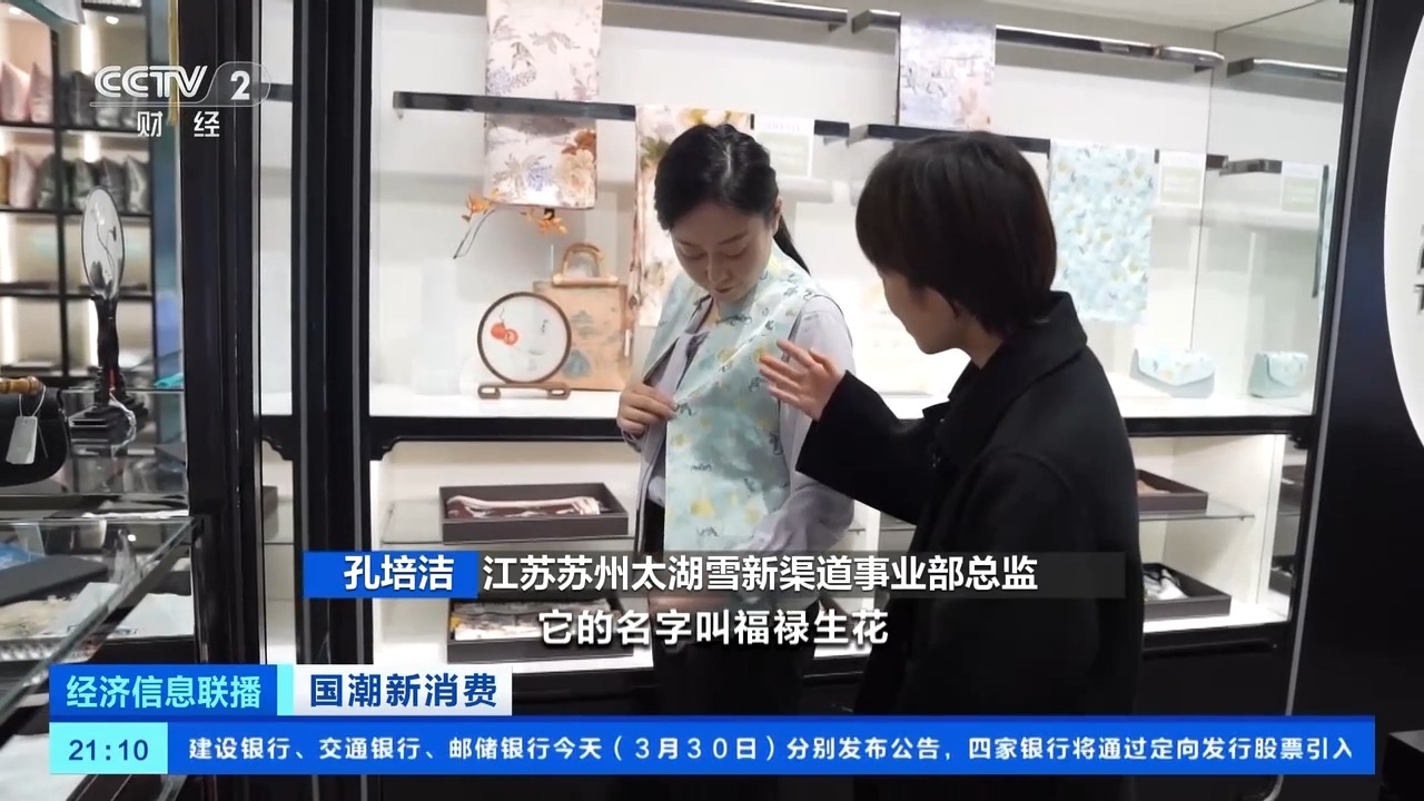 随着气温回暖,人们纷纷走出家门尽享春光,宋锦服饰也成了“新中式”穿搭中的热门单品,销量大增。