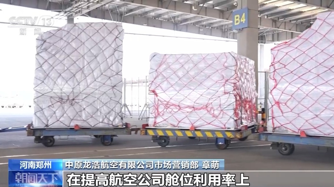 河南航空货运发展有限公司货运市场营销部 李常亮:时效能够提升3到6个小时,而且我们现在对中转货实行一次性收费,算下来相当于我们一公斤为客户就节省了将近4毛钱的成本。