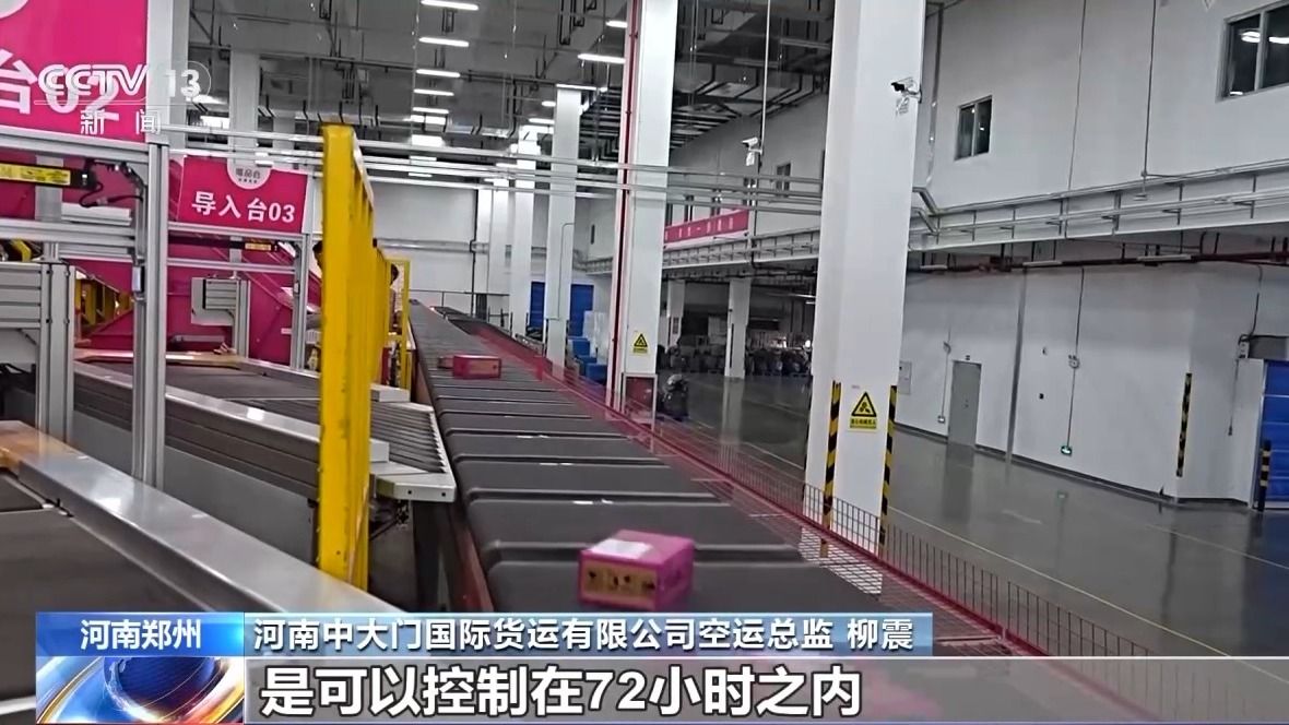 河南中大门国际货运有限公司空运总监 柳震:从国内工厂提货,到整个航班在境外口岸落地,我们整体的时效是可以控制在72小时之内,完全符合高效运转的时效要求。