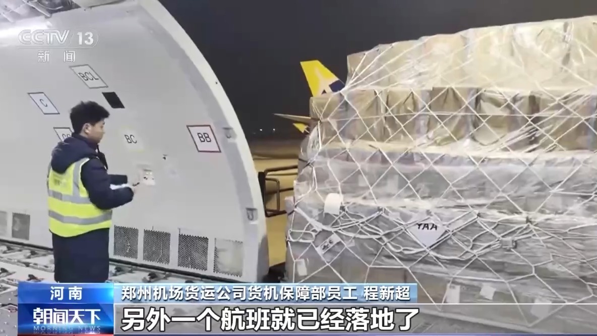 新朋友入驻,老朋友的业务也在拓展。记者采访期间,一架从韩国飞来的全货机刚刚落地,工作人员告诉记者,这架全货机是通过“空空中转”将电子产品等货物从韩国首尔运抵郑州,随后再转运至印度金奈。
