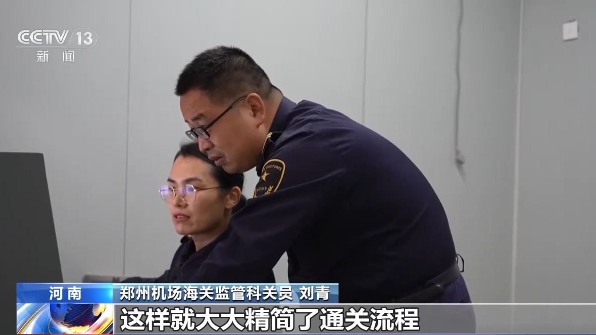 郑州机场海关监管科关员 刘青:我们简化了出口单证申报手续,企业无需再向海关提交收款的电子信息了。另外我们也积极推广出口拼箱货物,先查验后装运的监管模式,这样就大大精简了通关流程。