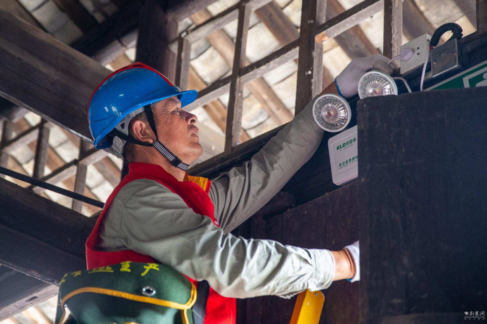 “先检查陈列馆线路和灯具,保证开馆前线路通道用电正常。”在老街最具代表的历史建筑陈列馆,杨华带领本组的3名队员认真检查配电箱、射灯和投影仪等重要保电设备。